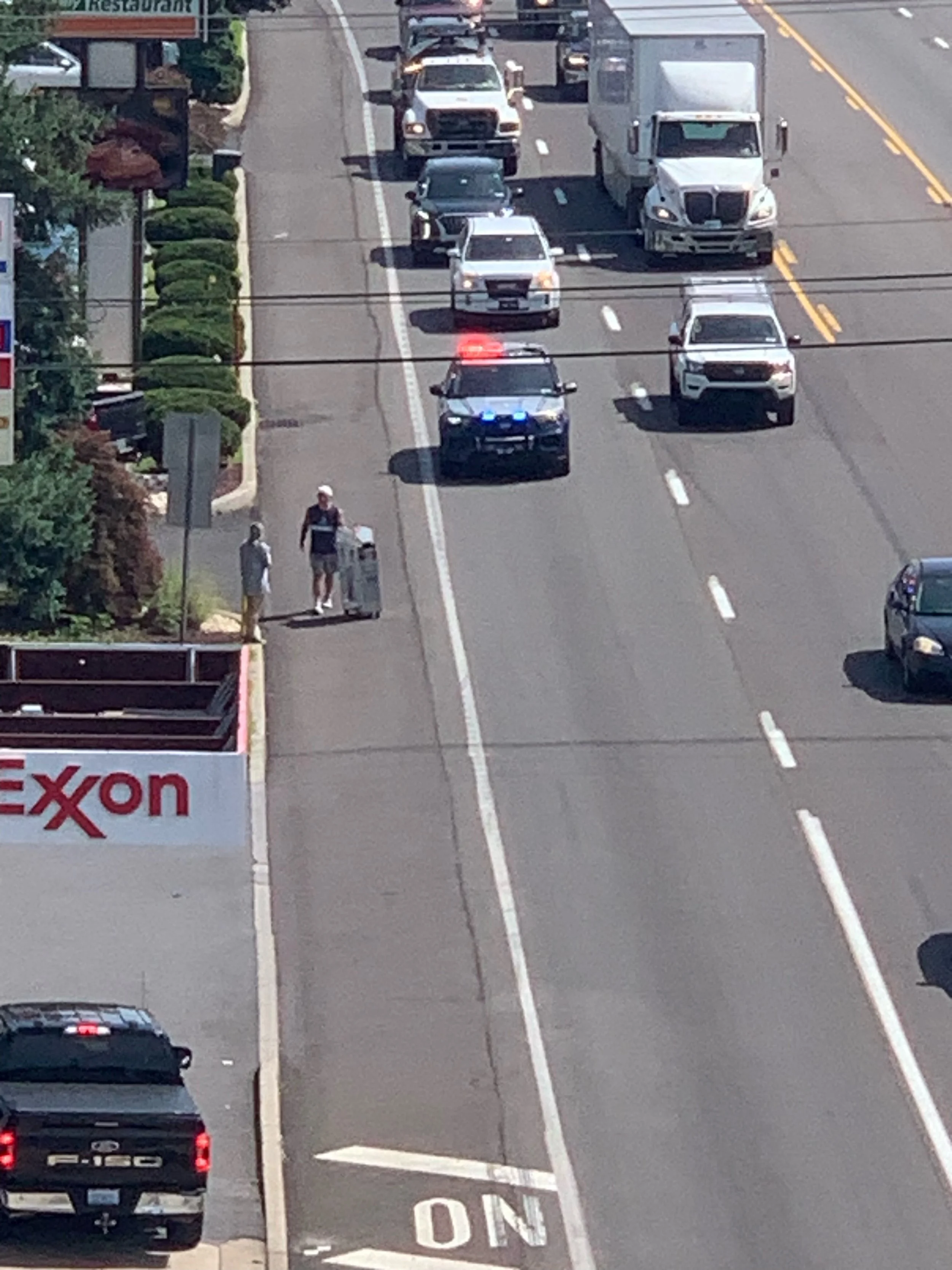 On our way back to the hotel. I got a message on Facebook from someone else who said she’d been at the restaurant and had wanted to wish me well, but didn’t want to disturb our dinner. Folks, you heard it here first: you can *never* disturb me, at dinner or anywhere else. Meeting people along the way is what it’s all about. Whether I’m pushing the cart, or you see me and the team out once the day’s Push is done - please feel free to come up, introduce yourself, and say hello! I keep saying just the Push lets me meet the nicest people. It seems I *almost* meet some of the nicest people, too. I can’t wait to meet more of you in between here and Shanksville… And to the couple pictured here - thank you very much.